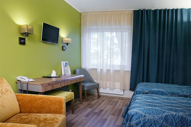 Huoneet: Hotellissa on 105 kodikkaasti sisustettua, tilavaa huonetta, myös allergikoille ja erityistarpeisille. Standard-huoneen koko 19–21 m2, leveä vuode tai kaksi erillistä vuodetta, kylpyhuoneet suihkulla, hiustenkuivain, puhelin, LCD-televisio / Radio, ilmainen langaton internetyhteys, minibaari, tallelokero, säädettävä ilmastointi, pimennysverhot, kahvin ja teen valmistusmahdollisuus