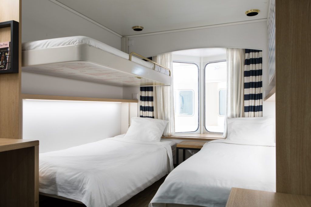 - paluumatkalla majoitus laivalla B-luokan kahden hengen hytissä