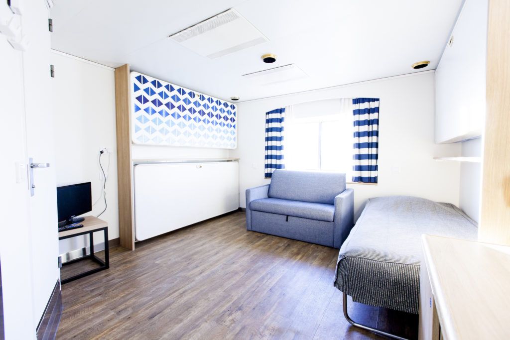 Kaikissa majoitustiloissa on suihku, WC, merinäköala ja savuttomat puitteet.