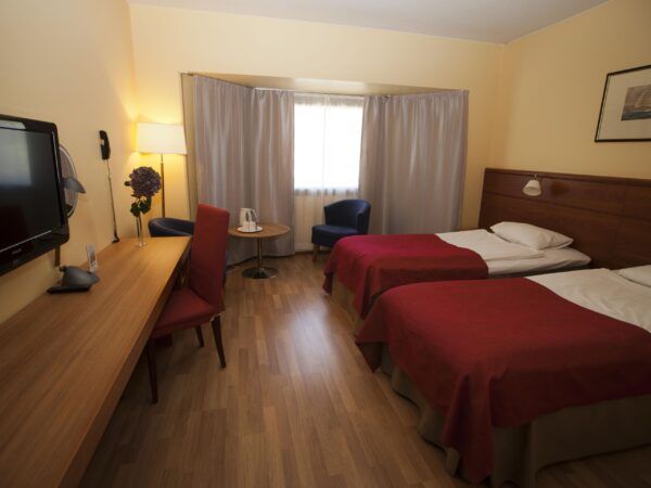 Standard-huoneissamme on kaksi erillistä vuodetta ja lisävuodemahdollisuus kolmatta henkilöä varten. Huoneet ovat n 20 m2.