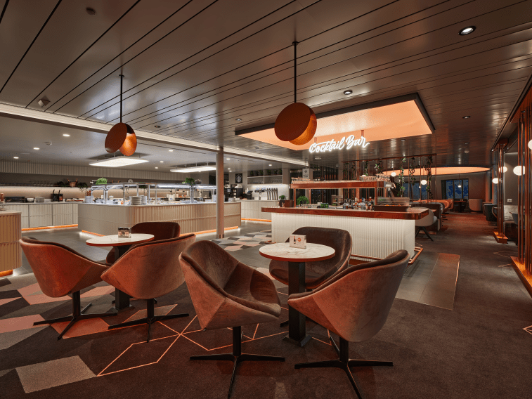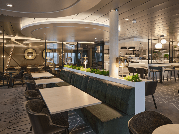 Fast Lane -ravintolassa nautit helposti raikkaat salaatit, maukkaat lihapullat tai luksus-hodarit. Ravintola sijaitsee kannella 9 keskellä.