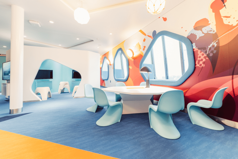 Lasten valtakuntaa on leikkihuone, jossa voi leikkiä, katsoa piirroselokuvia tai pelata Play Stationilla.