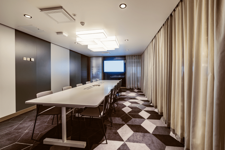 Kokoustilat Business Loungessa, 12 hengen Vip Room -kokoustila lisämaksusta.
