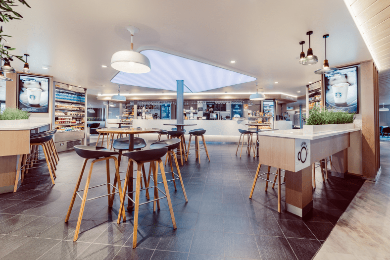 Coffee & Co, kahvila, joka tarjoaa korkealaatuista Starbucks 100 % Arabica -kahvia sekä Tazo® teetä. Ravintola sijaitsee kannella 8 keskellä.